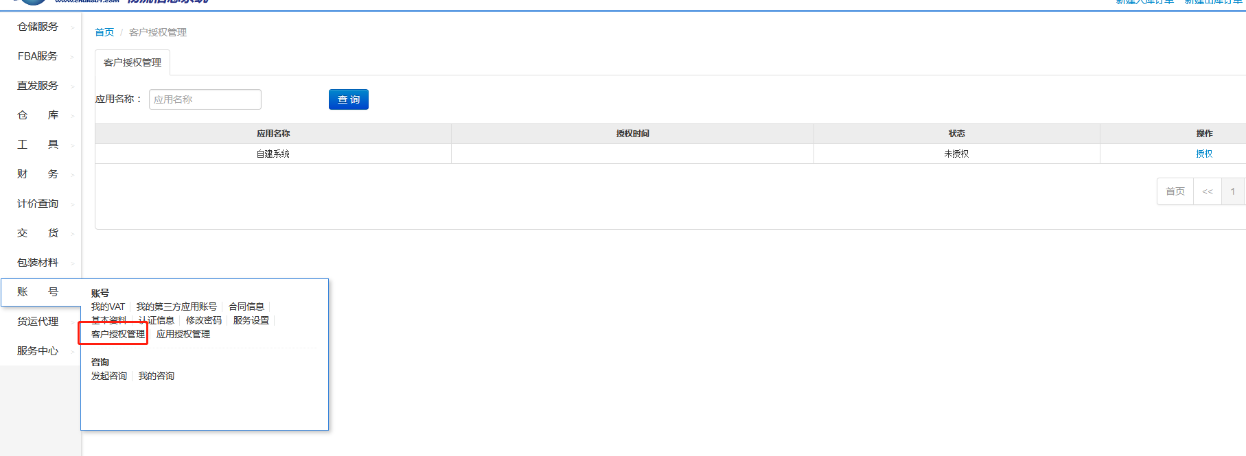 打开授权菜单(账号-> 客户授权管理)